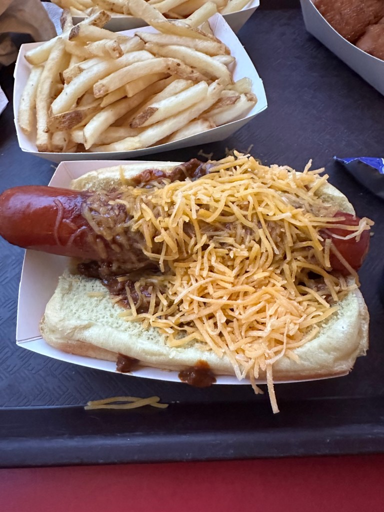Next stop was Casey’s Corner. For as many times as I’ve been to Magic Kingdom I don’t recall ever eating there. I guess because I’m not a huge hotdog fan but with it being 4th of July weekend I thought it was appropriate. I ordered a chili dog and my husband chose the corn dog nuggets. Both meals came with tasty French fries. The corn dog nuggies were yummy, I understand the following! The chili dog was delicious the bun was soft the hot dog itself was large and had a nice snap to the skin. The chili and cheese were the perfect compliment. They also have a foot long version available but I couldn’t finish the one I ordered. Casey’s Corner is a solid Mobile Order option while at the park.