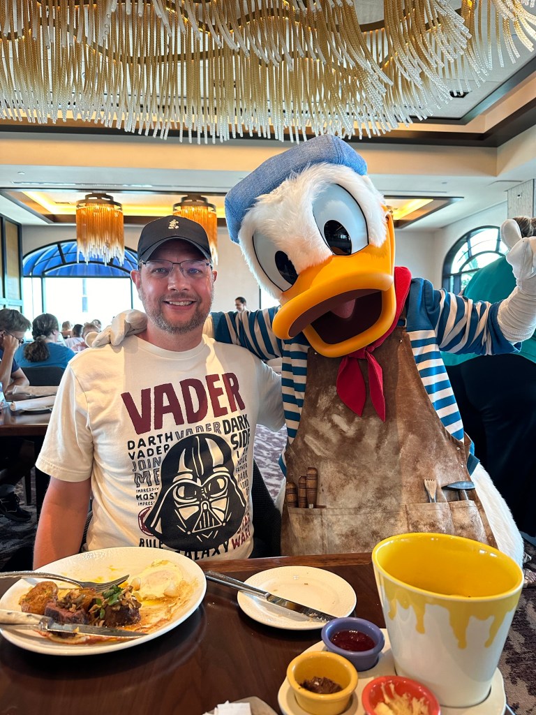 During our recent visit to Walt Disney World I wanted to schedule at least one character experience and Donald Duck is my husband’s favorite. So this was a perfect choice. I had being hearing a lot of hype on Topolino’s character breakfast and it lived up to the hype. Topolino’s Terrace is located on the 15th floor of Disney’s Riviera Resort. There is a terrace with amazing views of Walt Disney World Resort. Be sure to take a few minutes to check it out.